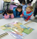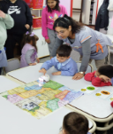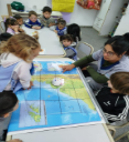 Luego surgió la posibilidad de compartir lo trabajado con las familias. Ya que como cierre de este del proyecto, se realizó una clase abierta con las familias. Donde los alumnos pudieron situarse en el lugar de protagonistas de la actividad. Enseñándole cada uno y cada una a su familiar presente a utilizar la robotita, mediante indicaciones verbales y corporales sobre qué botones apretar y cuantas veces, como lograr que gire y que estrategia usar para llegar a la provincia o país señalado