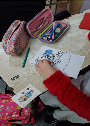 Los estudiantes diseñaron cada naipe, luego se escanearon los diseños y se bajaron a las notebook de los docentes, para luego intervenirlas y/o mejorarlas con la IA. Cada estudiante fue escribiendo la orden para que la IA la ejecute y cree, teniendo como base el diseño original. Para ello también tuvieron que acordar cuales serían las palabras a escribir, que objetos debían mejorarse y cuáles no. Luego de que la IA les mostro las imágenes intervenidas, los estudiantes siguieron con la escritura de los promts, teniendo en cuenta las respuestas de la IA hasta llegar al diseño final. Tuvieron que dialogar y consensuar, llegar a acuerdos que esas imágenes se relacionaban con lo que ellos le solicitaron. Se seleccionaron cada una de ellas para formar el mazo final con los cuatro palos de la baraja.