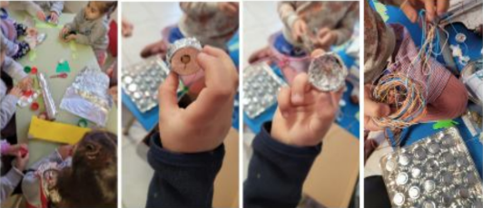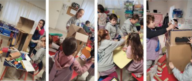 En la segunda etapa, los niños y niñas planificaron el diseño de sus robots mediante dibujos y la elaboración de listas de materiales reciclados, con la participación activa de las familias. Esta instancia promovió la toma de decisiones compartidas y la cooperación entre pares.
