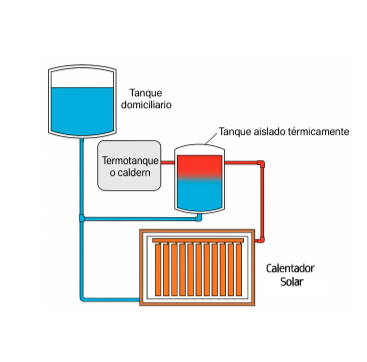 - ¿Cómo llega al tanque? Una vez que el agua está caliente, pasa al tanque por efecto sifón, sin necesidad de bomba. A medida que el agua dentro del tanque se enfría, desciende a la parte inferior y vuelve a entrar en el circuito del calentador