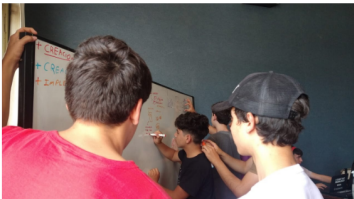 La propuesta inicial fue imaginar una narrativa ambientada en la propia escuela para pensar la física como elemento que da sentido a ese nuevo universo. A partir de esta propuesta se abrió un portal de escritura y dibujo colaborativo. Cada grupo de estudiantes ideó personajes, experimentos ficticios y situaciones en las que el conocimiento científico se transformaba en superpoderes.